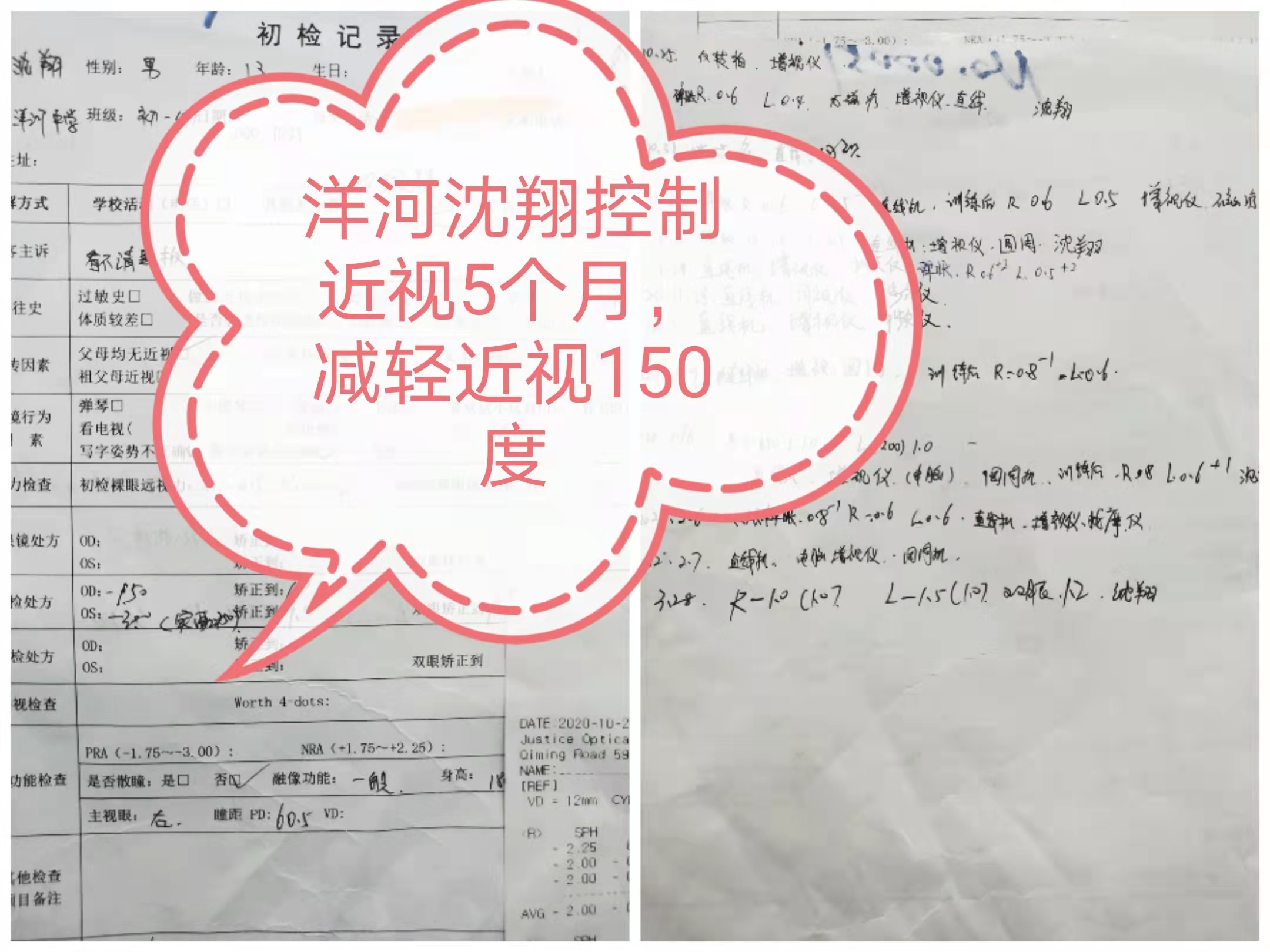 洋河青少年控制近视5个月减轻戴镜度数150度