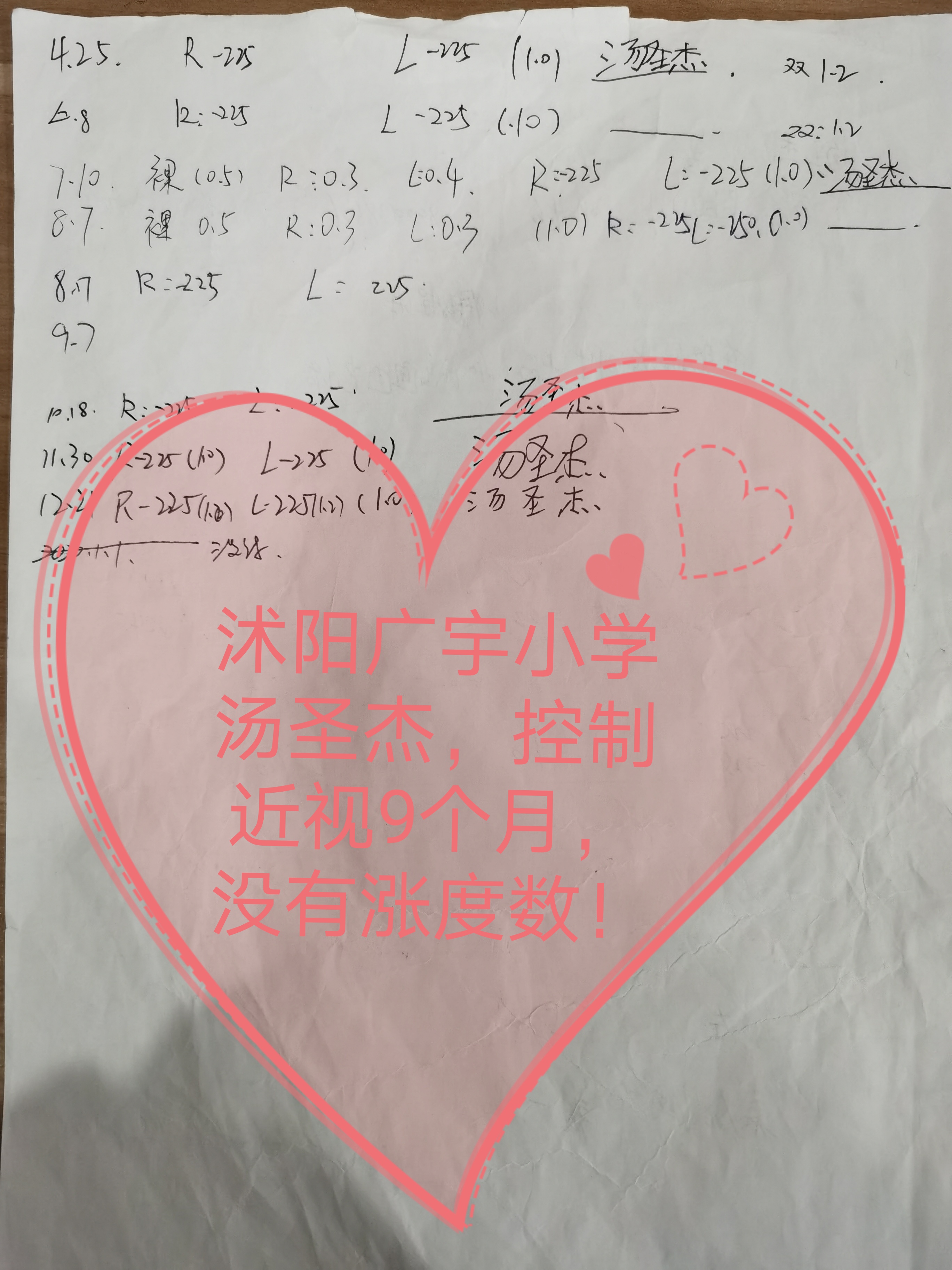 沭阳广宇中学青少年控制近视9个月没有张度数